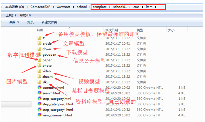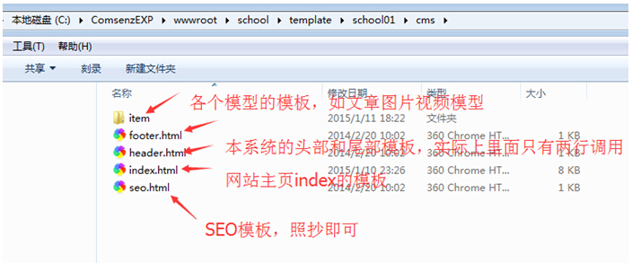 A:不要去看其他的模板,只需看自己所有需的模板,就是school01(如果是自己的新模板,那么就是你命名的文件夹);其他基本可以忽略